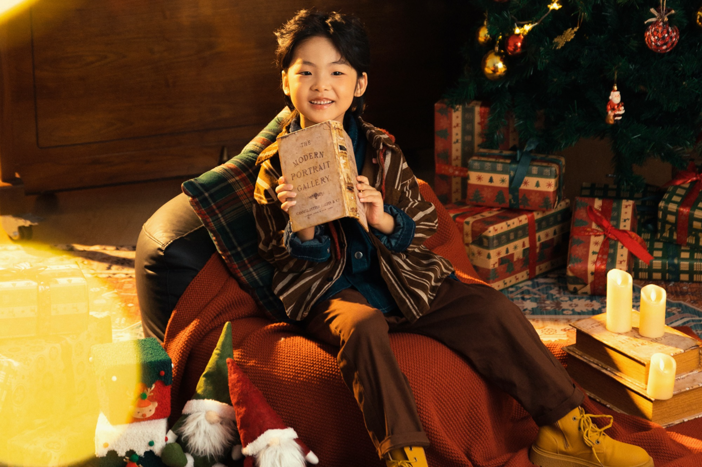 图中宝贝5岁,身高110,其他年龄段可以搭配不同服饰拍摄[更多…]